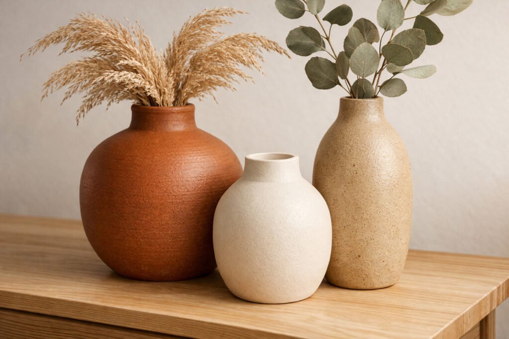 • Estilo Escandinavo/Boho: Aposte em cestos de palha, vime ou cerâmica em tons terrosos e neutros.