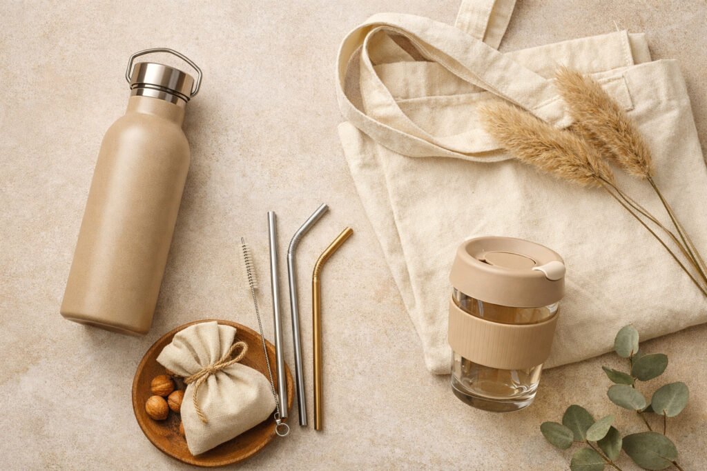 • Sacolas Reutilizáveis (Eco-bags): Tenha sempre uma sacola de pano no carro ou na mochila. Isso elimina a necessidade de dezenas de sacolas plásticas a cada ida ao mercado.